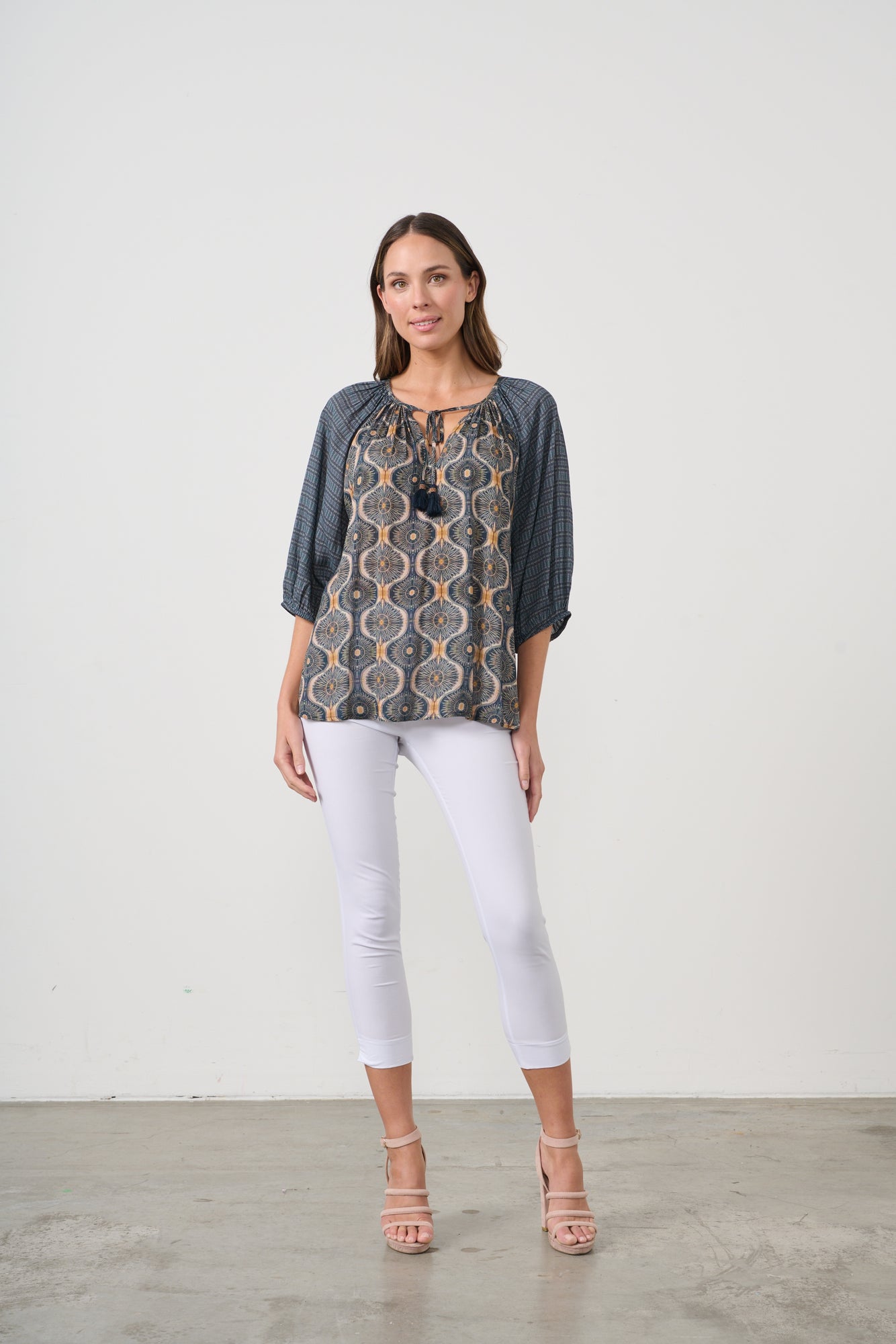 This print is truely gorjus! Dark teals,smokey blues navy and a pop of earthy mustard. the two different prints are so complementary