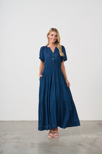 Your perfect timeless maxi dress! a dress you can pull out for so many occasions, dress it up or down, add layers for cooler seasons or sandals for warmer seasons. A stunning navy self check seersucker fabric