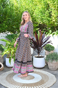 LONG SLEEVED BOHO MAXI - BLACK/PINK