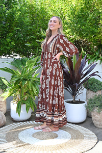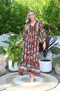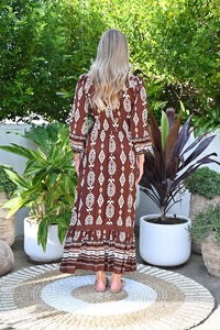 LONG SLEEVED BOHO MAXI - CHOCOLATE