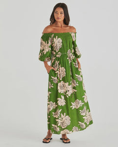 SASS ANTONIE OFF SHOULDER DRESS- MOONFLOWER GREEN