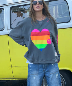 HAMMILL + CO VINTAGE HEART SWEAT - CHARCOAL