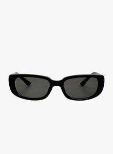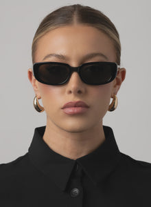 With their bold, curved frame that seamlessly follows the contours of your face. Black frame paired with smoke lenses