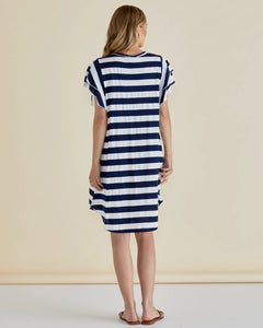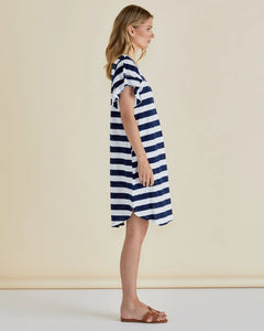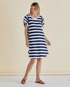 BETTY BASICS SYDNEY TEE DRESS- BLUE STRIPE NAVY